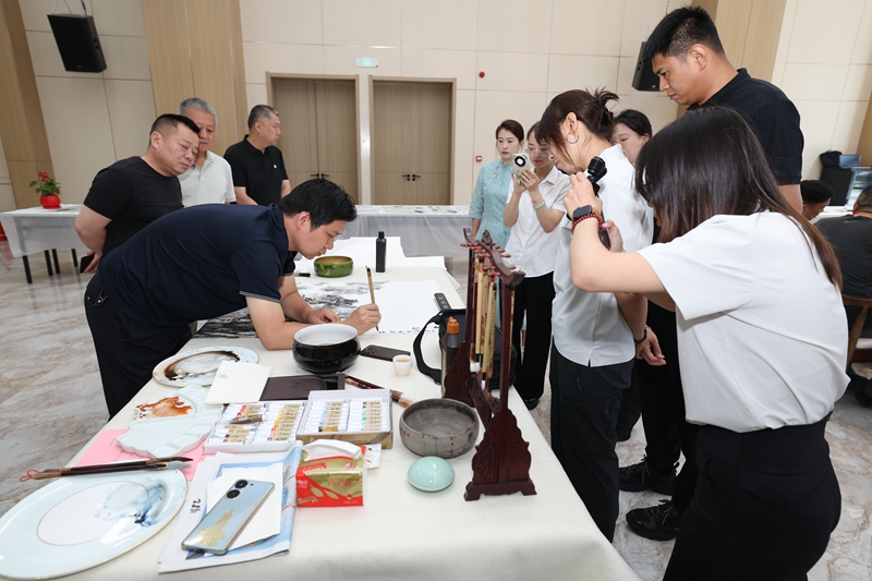 作為東道主,中維控股集團(tuán)董事長(zhǎng)郭秀忠、總裁郭雅磊攜集團(tuán)高管全程參與,沉浸式體驗(yàn)這場(chǎng)文化盛宴。大家或駐足欣賞佳作,或與藝術(shù)家們親切交流,共同沉浸在傳統(tǒng)文化的深厚滋養(yǎng)之中。